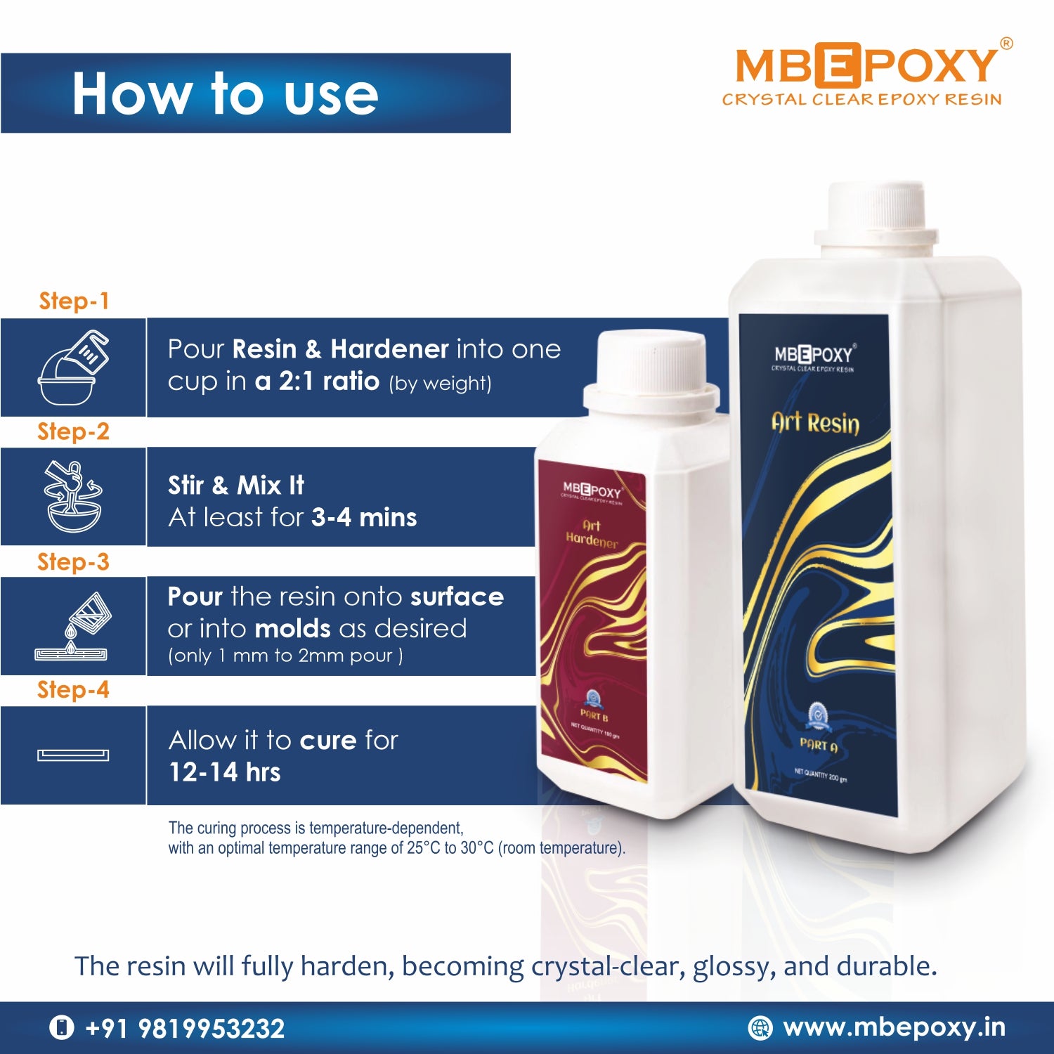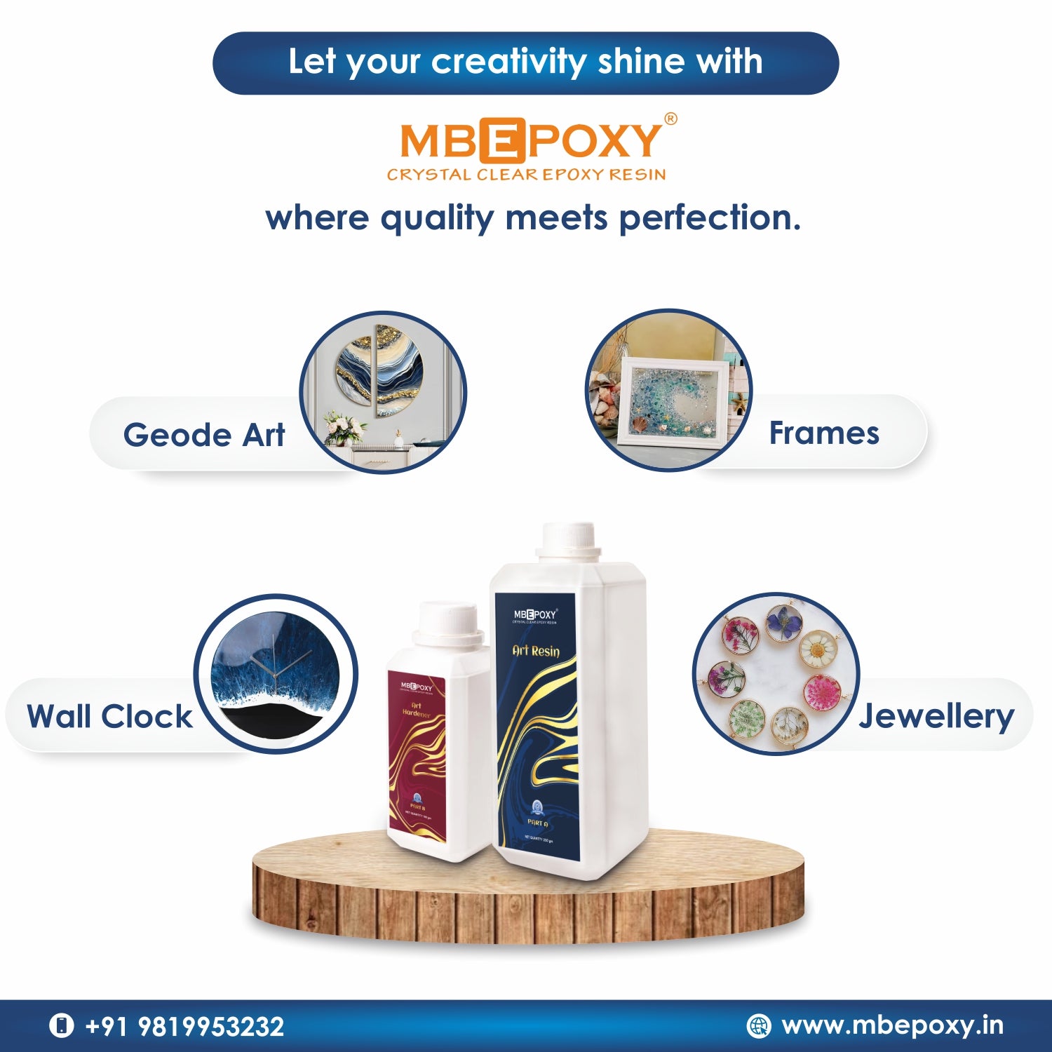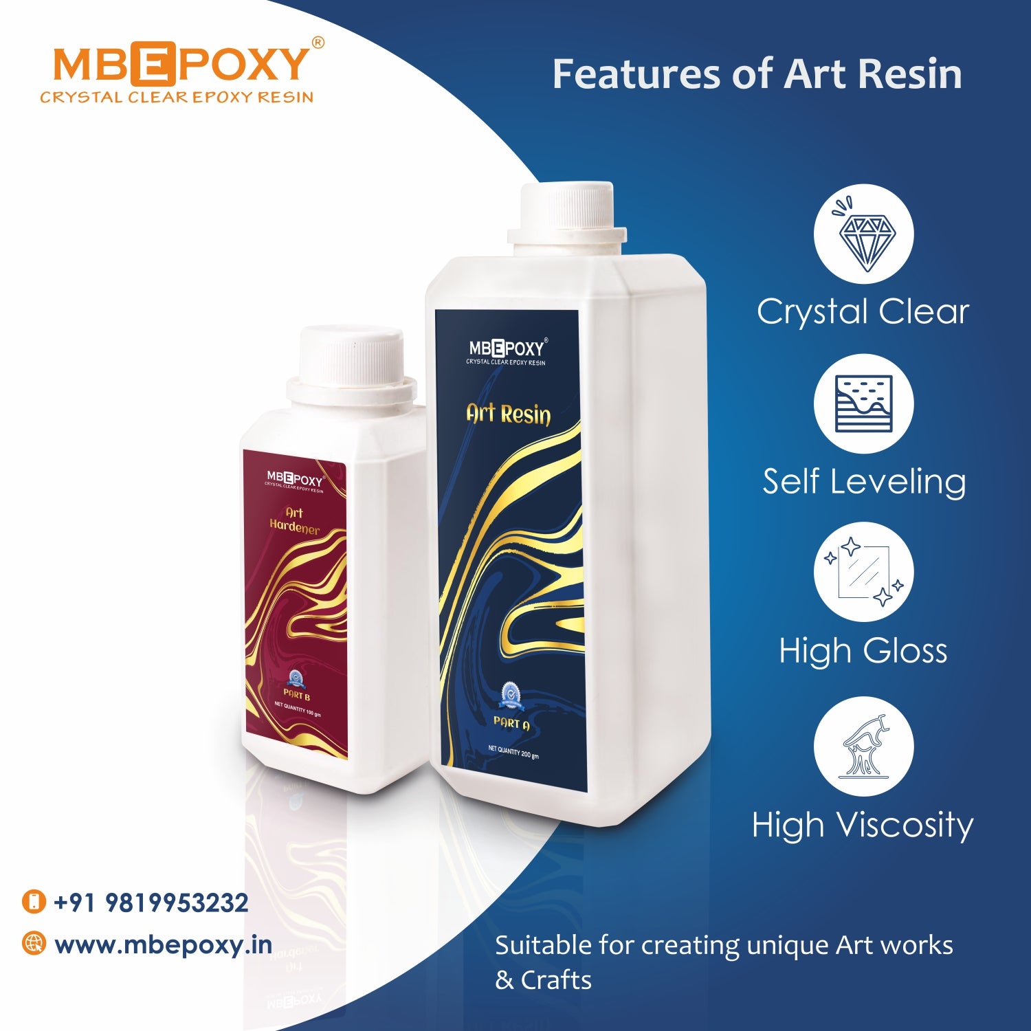 Whether you are a professional artist or a passionate hobbyist, MBEPOXY® Art Resin will already provide the high performance you are looking to unleash your creativity. Enjoy the brilliance of the best epoxy resin art with MBEPOXY® Art Resin - proudly manufactured in India.